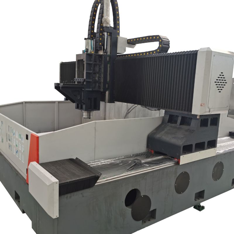 Nó chủ yếu bao gồm bàn làm việc, cổng di động, yên trượt di động, đầu khoan và phay điện, thiết bị bôi trơn tự động, thiết bị bảo vệ, thiết bị làm mát tuần hoàn, hệ thống điều khiển số, hệ thống điện và các bộ phận khác. Được hỗ trợ và dẫn hướng bởi các cặp ray dẫn hướng lăn và được dẫn động bởi các cặp vít me bi chính xác, máy công cụ tự hào có độ chính xác định vị cao và độ chính xác định vị lặp lại.